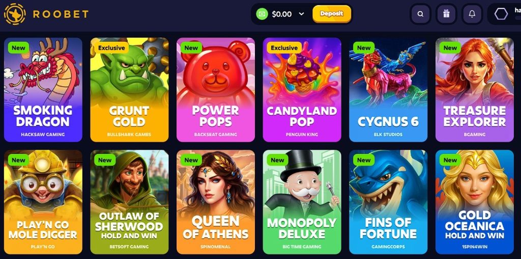 A screenshot of Roobet’s new games page