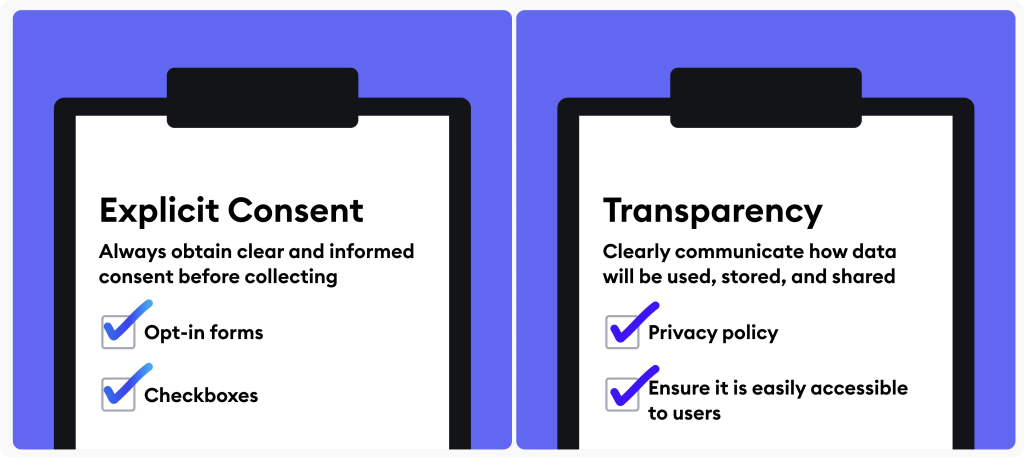 Always obtain explicit consent and be transparent about how the data will be used. Incorporate opt-in forms, clear checkboxes, and an accessible privacy policy to build trust.